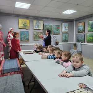 Утром к нам пришли воспитанники детского сада — для них организовали увлекательную экскурсию. Во второй половине дня нас посетили обучающиеся Дебёсской школы искусств: они с вниманием изучали работы, представленные на выставке Надежды Анваровны Поздеевой.