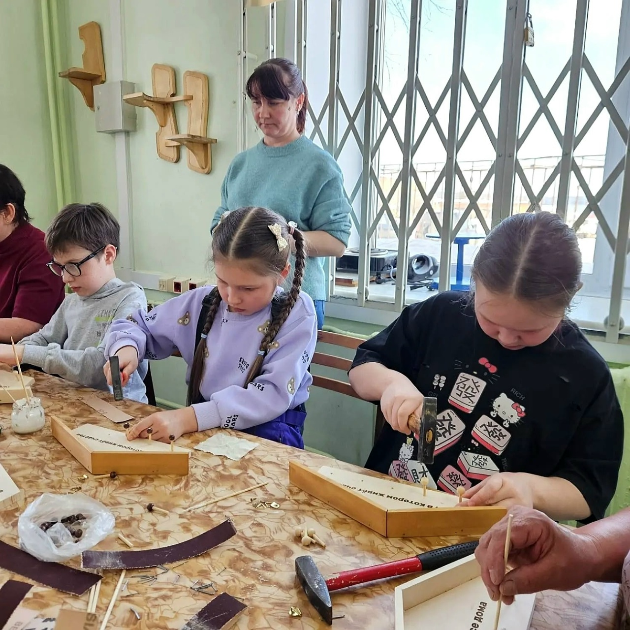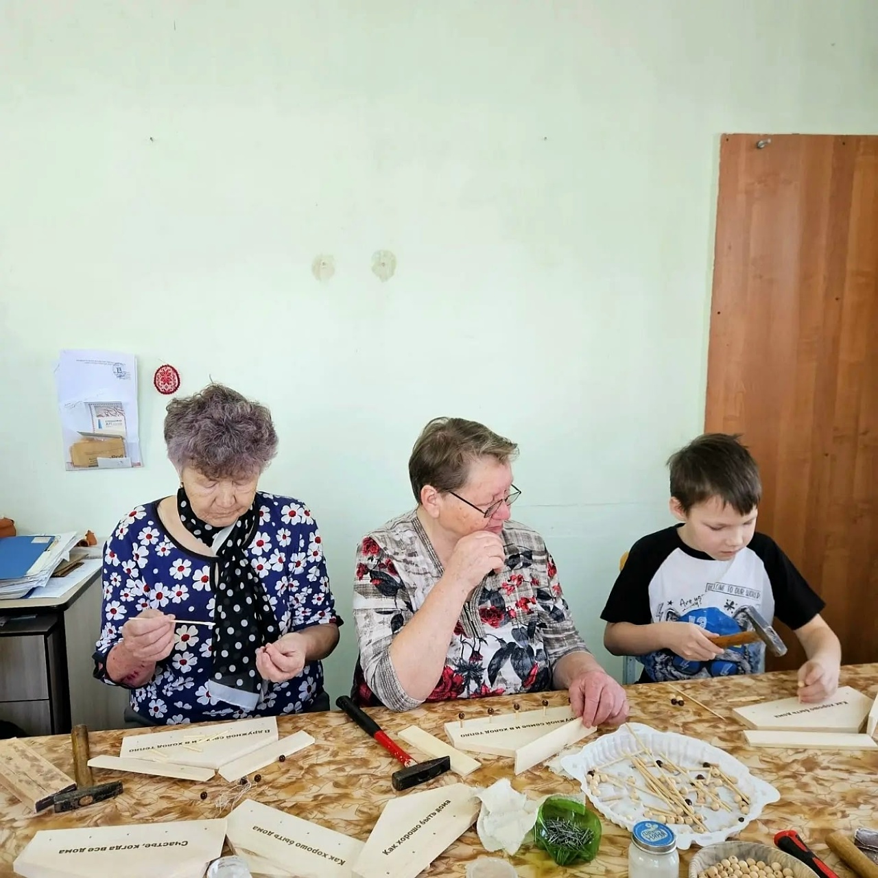 Сегодня у нас в гостях взрослые и дети мастерили ключницы и панно из можжевельника.