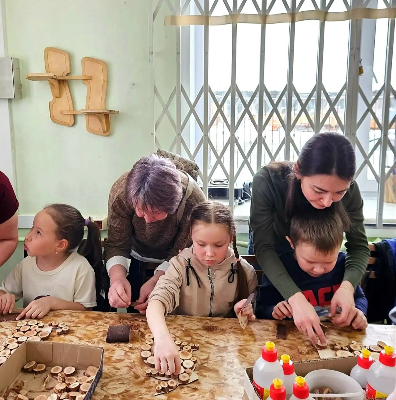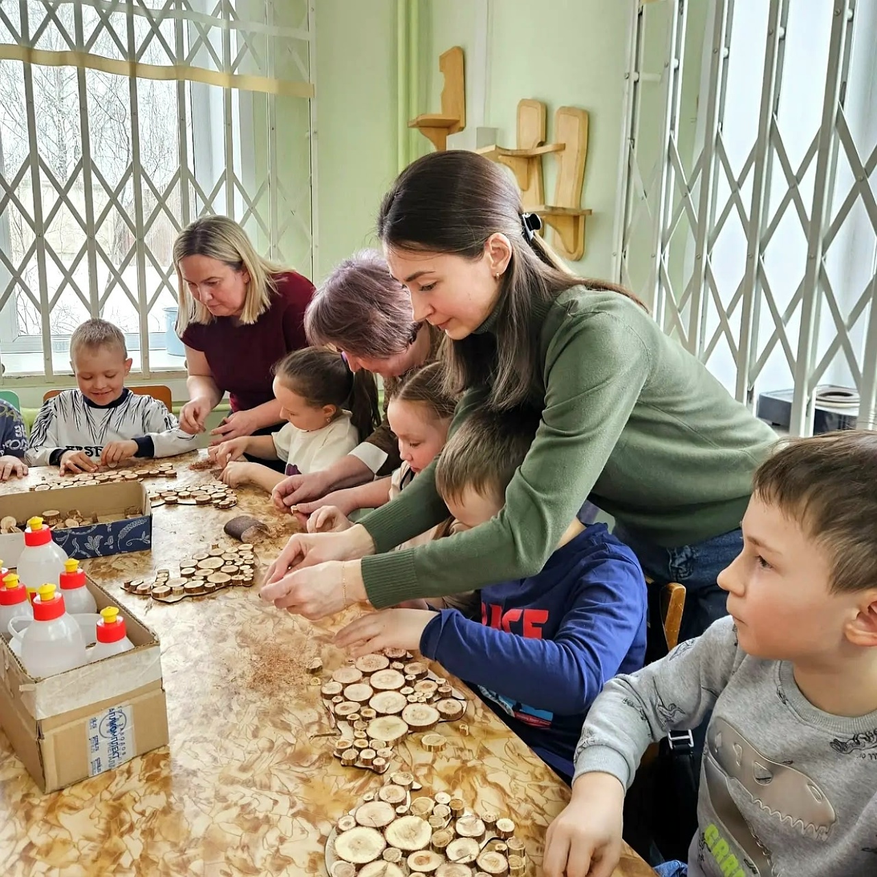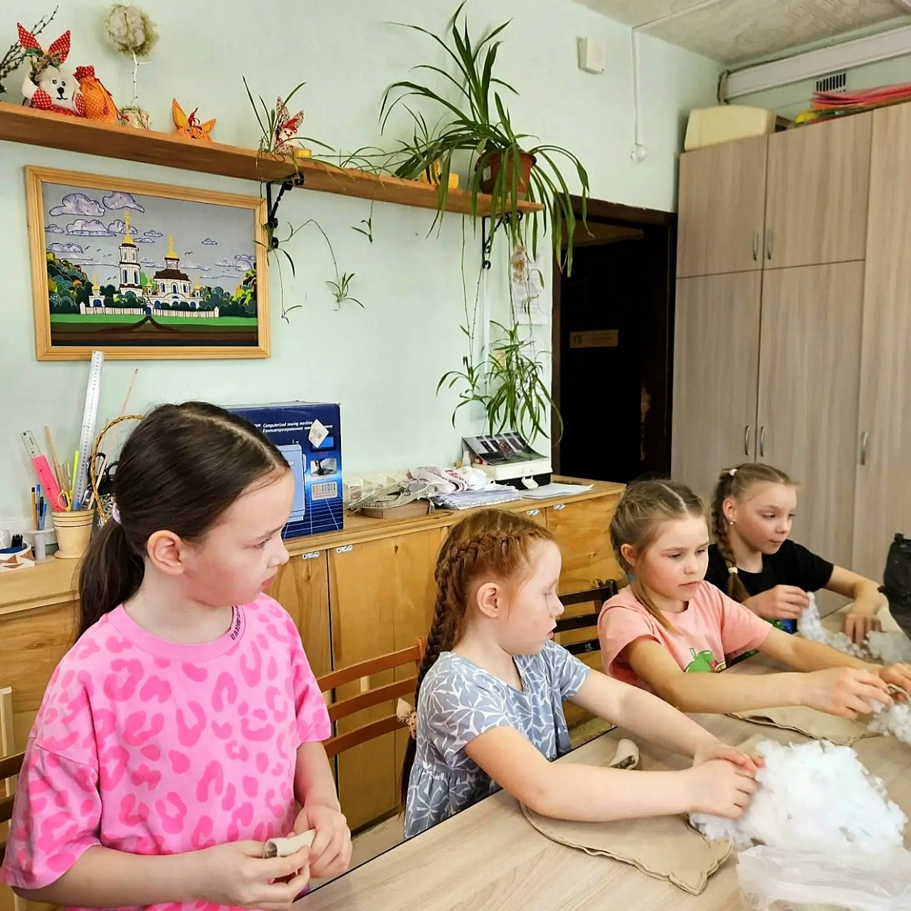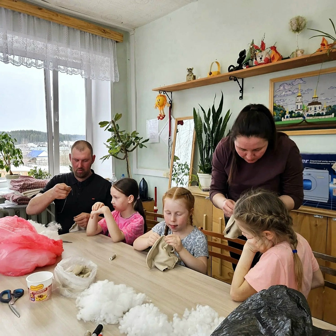В уютной атмосфере дети вместе с родителями изготавливали панно и шили мягкие игрушки.